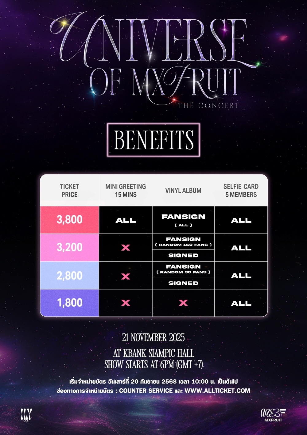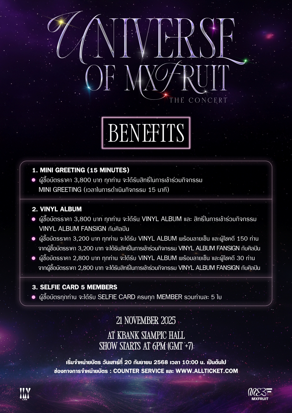 ‘จักรวาลนี้จะสมบูรณ์ได้ เพราะมีคุณอยู่เคียงข้างมิกซ์ฟรุต มาร่วมสร้างความทรงจำในจักรวาลนี้กับคอนเสิร์ต UNIVERSE OF MXFRUIT’