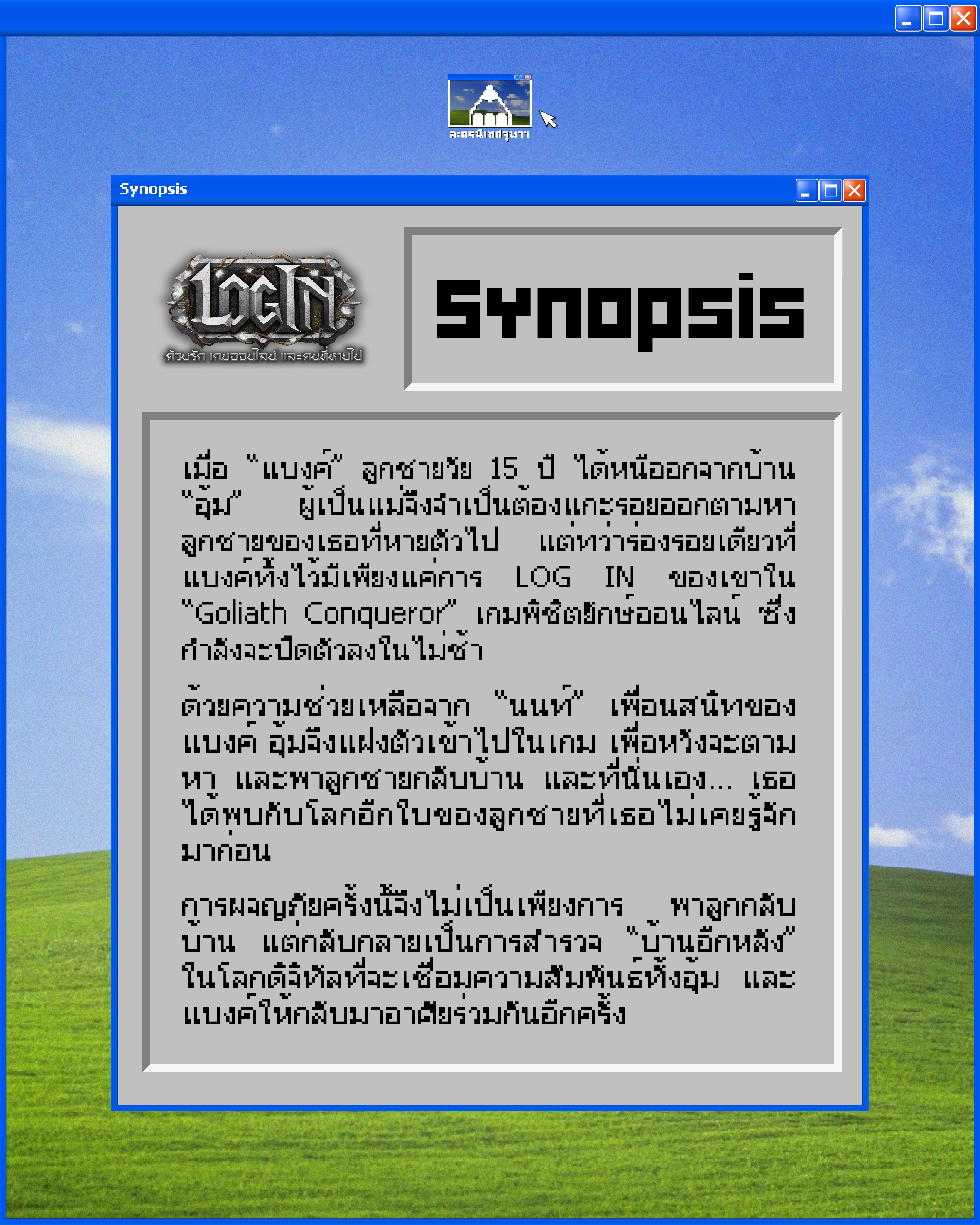 เมื่อ “แบงค์” ลูกชายวัย 15 ปี ได้หนีออกจากบ้าน “อุ้ม” ผู้เป็นแม่จึงจำเป็นต้องแกะรอยออกตามหาลูกชายของเธอที่หายตัวไป แต่ทว่าร่องรอยเดียวที่แบงค์ทิ้งไว้มีเพียงแค่การ LOG IN ของเขาใน “Goliath Conqueror” เกมพิชิตยักษ์ออนไลน์ ซึ่งกำลังจะปิดตัวลงในไม่ช้า ด้วยความช่วยเหลือจาก “นนท์” เพื่อนสนิทของแบงค์ อุ้มจึงแฝงตัวเข้าไปในเกม เพื่อหวังจะตามหา และพาลูกชายกลับบ้าน และที่นั่นเอง… เธอได้พบกับโลกอีกใบของลูกชายที่เธอไม่เคยรู้จักมาก่อน การผจญภัยครั้งนี้จึงไม่เป็นเพียงการ “พาลูกกลับบ้าน” แต่กลับกลายเป็นการสำรวจ “บ้านอีกหลัง” ในโลกดิจิทัลที่จะเชื่อมความสัมพันธ์ทั้งอุ้ม และแบงค์ให้กลับมาอาศัยร่วมกันอีกครั้ง